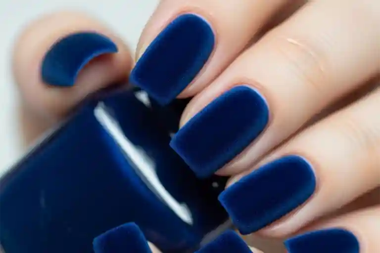 Этот маникюр выглядит роскошно и загадочно. Глубокий синий цвет с бархатным эффектом придаст вашему образу глубину и элегантность.