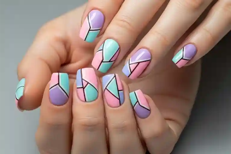 Если вы предпочитаете современный и стильный вид, геометрический маникюр в пастельных тонах – отличный выбор. Это могут быть полоски, треугольники или другие фигуры.