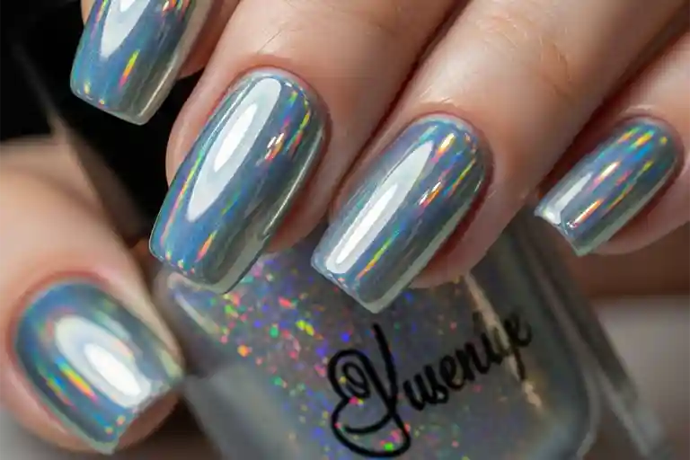 Этот маникюр выглядит футуристично и очень эффектно. Хромированный эффект с голографическими переливами привлечет внимание и подчеркнет вашу индивидуальность.