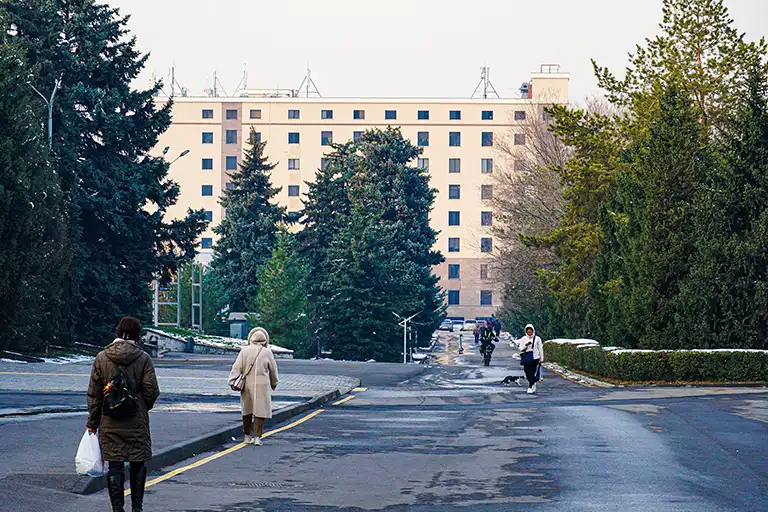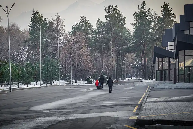 Дальше снова прогулка. Обожаю эти алматинские кварталы! Величественные здания, ухоженные тропинки, и вот это ощущение, что ты вроде бы в городе, но в то же время на лоне природы. Осень тут умеет быть разной: то ярко-желтой, то уже с морозным привкусом.