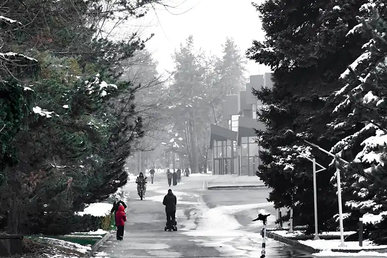 Утро началось с прогулки по парку. Даже несмотря на первые признаки зимы, когда под ногами уже немного скользко, а природа готовится к спячке, здесь такая красота. Хвойные деревья стоят величественно, а вдали виднеются заснеженные вершины – невероятный фон для начала дня. Немного народу, все гуляют в своем темпе, и это умиротворяет.