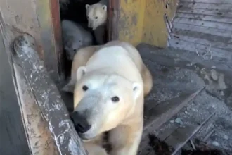 Фотограф и путешественник Вадим Махоров запечатлел необычную сцену на острове Колючин в Чукотском море: группа полярных медведей обосновалась на территории старой метеостанции.