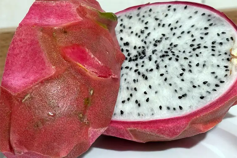 Драконий фрукт – это не просто красивый экзот, но и низкокалорийный диетический продукт, богатый полезными веществами. В 100 граммах мякоти содержится всего около 50-60 кКал.