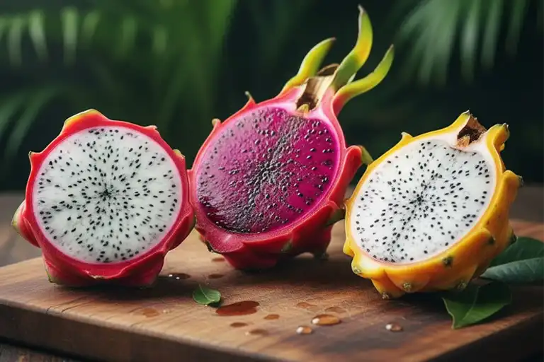 Существует три основных, наиболее распространенных вида драконьего фрукта, отличающихся по цвету кожуры и мякоти: