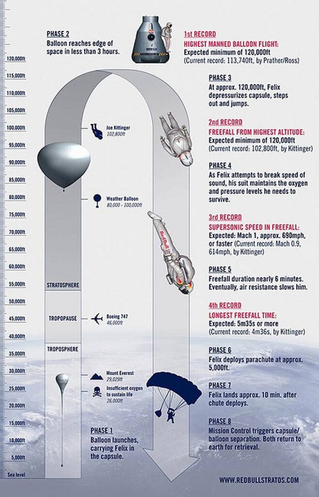 14 октября 2012 года настал решающий день. Подъем занял почти 2,5 часа. Каждая минута приближала Феликса к точке невозврата. На высоте 39 километров он открыл люк, и перед ним распахнулась картина, которую видели лишь немногие: черный, бархатный космос над головой и голубой, невероятно яркий купол Земли под ногами.