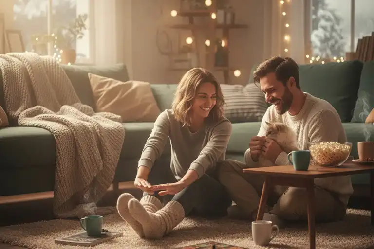 - Совместное пребывание: Проводите время в одной комнате с семьей или друзьями. Чем больше людей в помещении, тем теплее оно становится за счет выделяемого ими тепла.