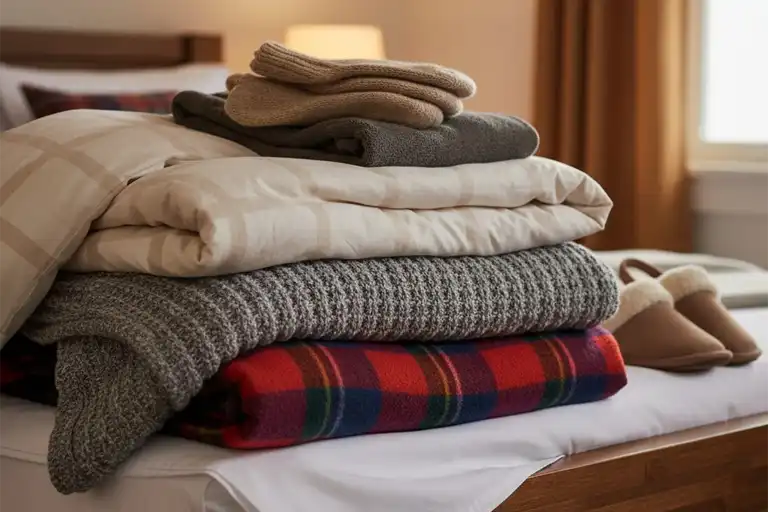 - Постельные принадлежности: Выбирайте одеяла с наполнителями из шерсти, пуха или современных синтетических материалов с высокими теплоизоляционными свойствами. Фланелевое или байковое постельное белье также добавит тепла. Используйте дополнительные пледы.