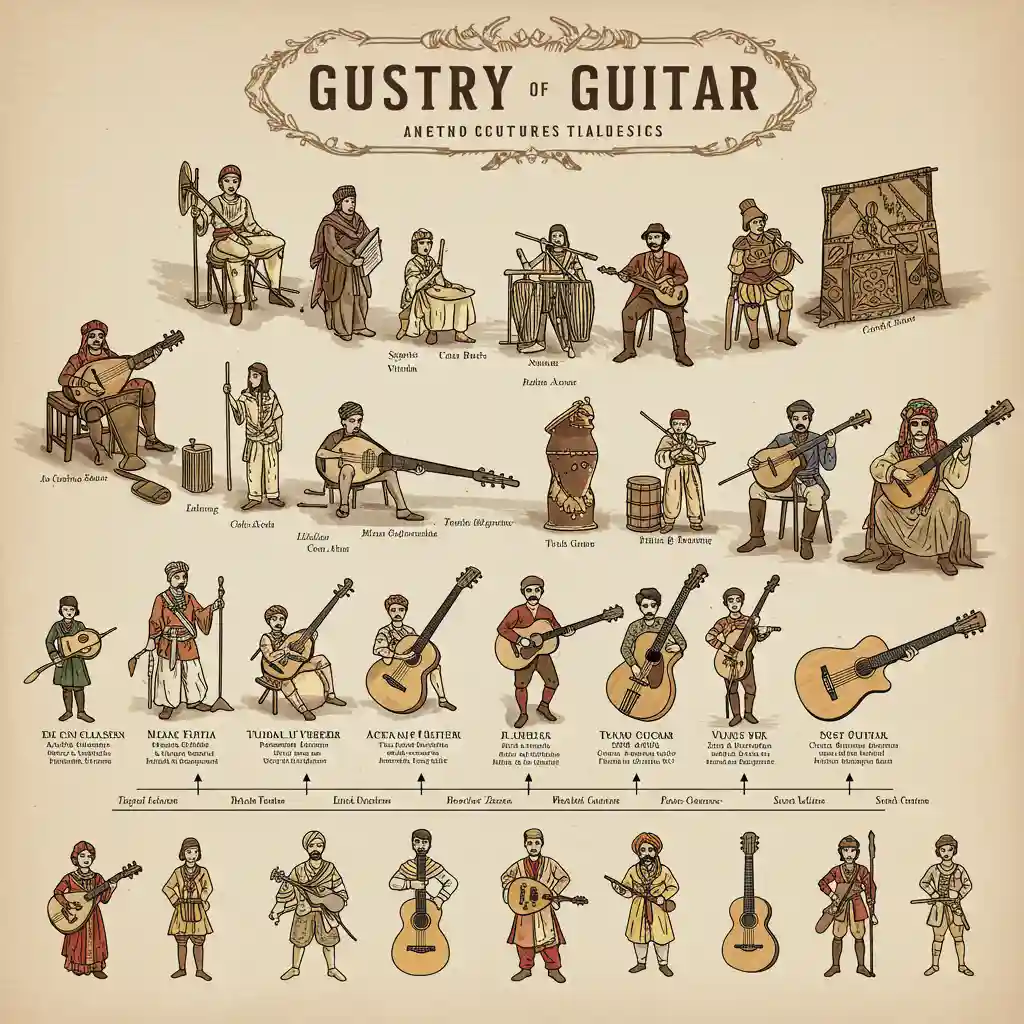 Чтобы понять историю гитары, нам придется заглянуть вглубь веков, к самым истокам струнных инструментов. Археологические находки и исторические свидетельства указывают на то, что струнные инструменты существовали еще в древних цивилизациях.