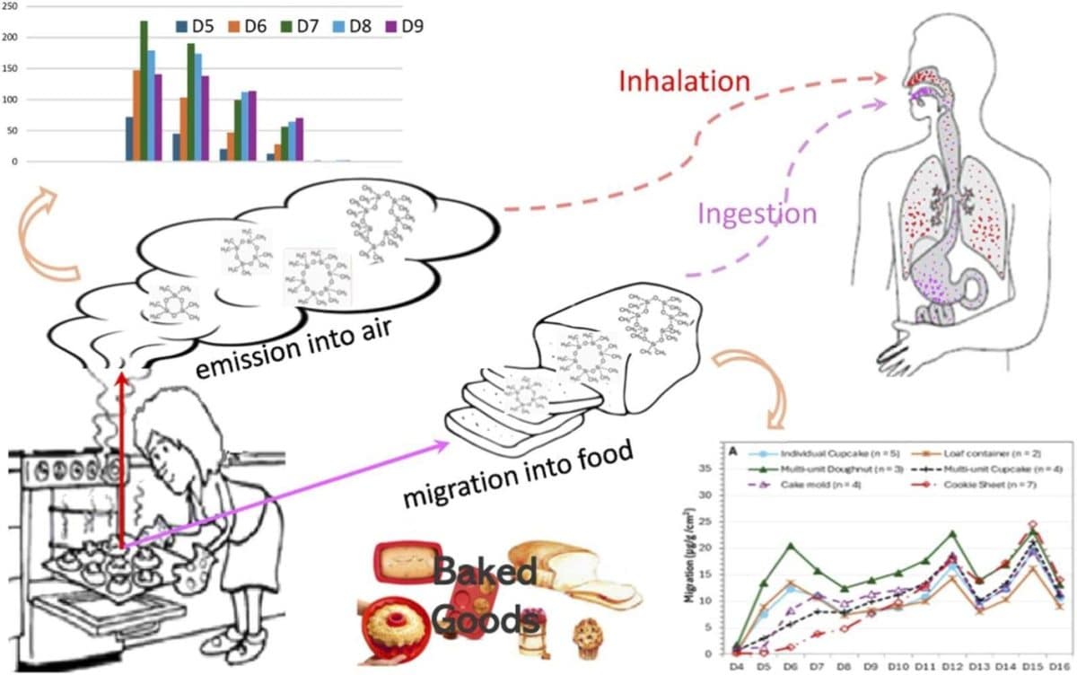 Учёные выявили 25 видов циклических силоксанов (от D3 до D27) в силиконовых формах. При выпекании они мигрируют в пищу и распространяются в воздух. Особенно уязвимы дети, которые вдыхают пары во время готовки и получают вещества с едой.
